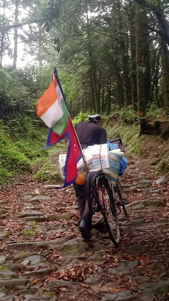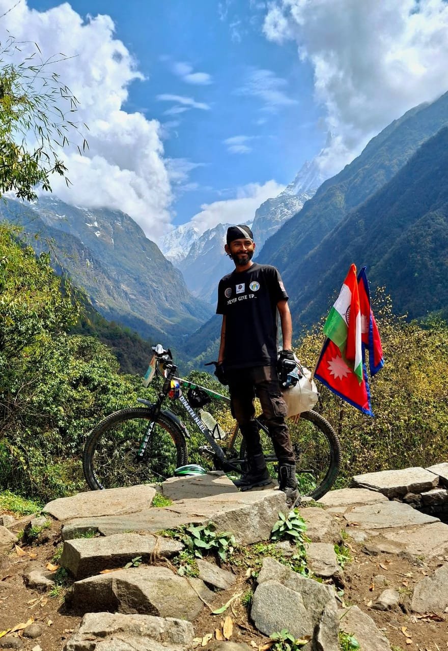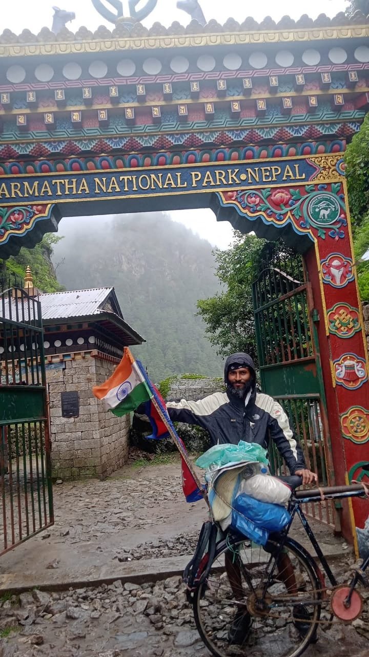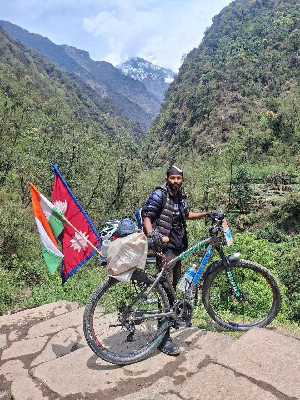 But the mountains were not welcoming at first. Not long after entering Nepal, a landslide blocked the road entirely, forcing me to carry my bicycle on foot for a considerable distance. My body was exhausted and my spirit was on the verge of breaking — but in that very moment, I reminded myself: this journey is not just for me. It is for my state, for my country, and for my late father. I picked myself up, got back on my bicycle, and rode on.