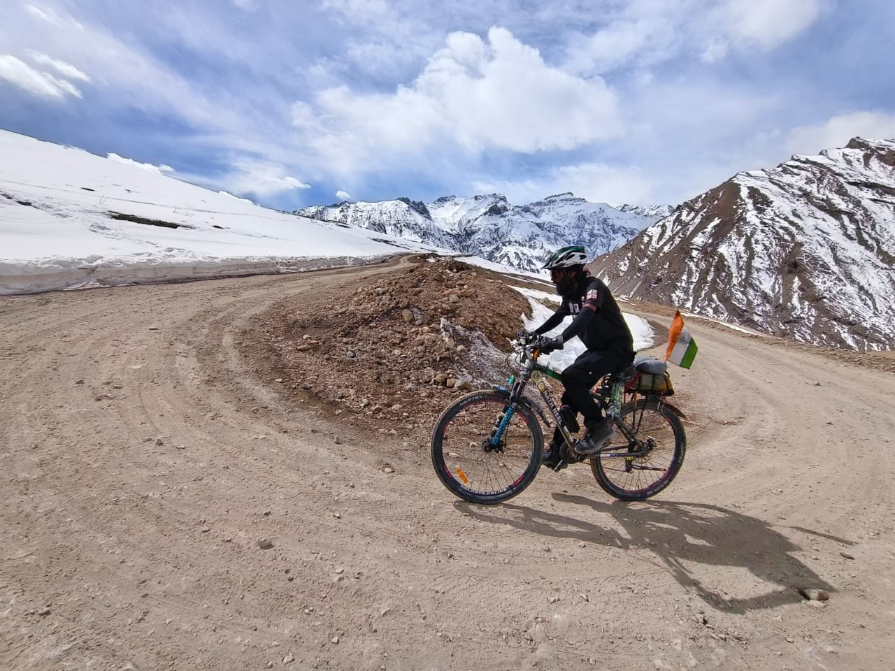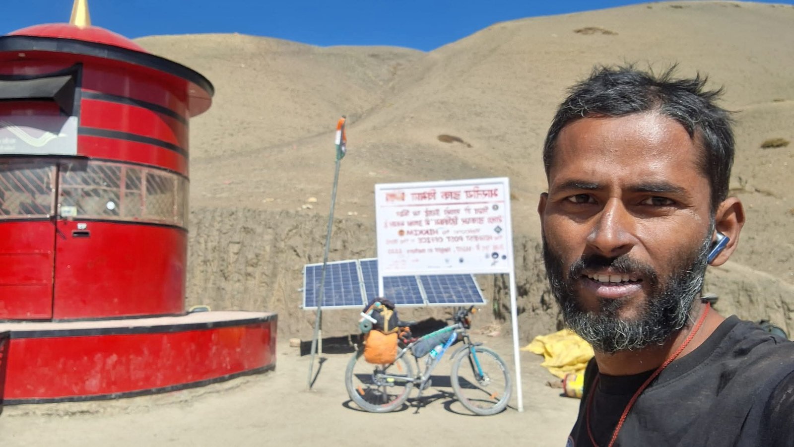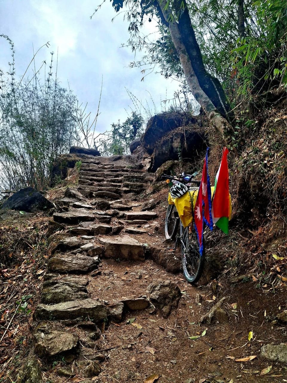 But the mountains were not welcoming at first. Not long after entering Nepal, a landslide blocked the road entirely, forcing me to carry my bicycle on foot for a considerable distance. My body was exhausted and my spirit was on the verge of breaking — but in that very moment, I reminded myself: this journey is not just for me. It is for my state, for my country, and for my late father. I picked myself up, got back on my bicycle, and rode on.